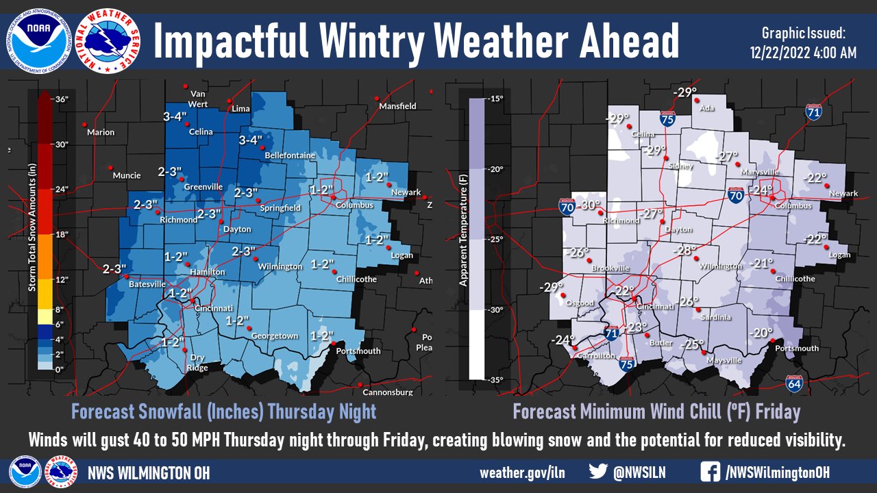 Nws Wilmington Oh On Twitter A Potent Cold Front Moves Through The Area Thursday Night Into Friday Morning Bringing Strong Winds Bitterly Cold Temperatures Amp Blowing Snow Winds Will Gust Up To
